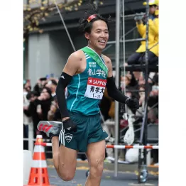 2025年の箱根駅伝の復路6区、青学大の野村昭夢は区間記録の快走で連覇を固めると、中継点のテレビカメラにシューズを差し出した。アディダスの3本線の上には仲間からのメッセージが書かれていた。