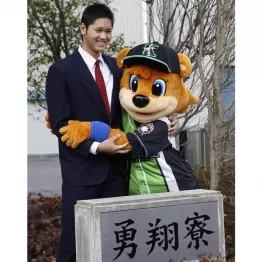 2013年の入寮時。この日に備えて散髪した大谷は、投手用と外野手用のグラブに加え、「持己(じき)」と書かれた色紙を持参。清水寺の貫主が揮毫したものだった。