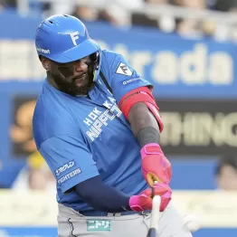 「17本塁打、51打点でチームでは2006年の小笠原道大以来となるリーグ2冠王に驀進中のレイエスの今季年俸は推定で3億円です。昨季のホーム最終戦の挨拶の中で異例の残留要請を行った新庄監督の猛プッシュもあって、金額は非公表ながら、1億円だった年俸が3倍となってチーム2位タイの高給取りになりました。支配下選手平均年俸(外国人選手を除く)が12球団中9位の4062万円という球団にとっては大きな額ですが、球宴ファン投票で全体5位の67万票超を集めたレイエスのグッズの売り上げはチームでもトップクラスだといいますからね。このままバットで9年ぶりのリーグ優勝まで牽引してくれれば、安いものですよ」(球団OB)