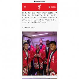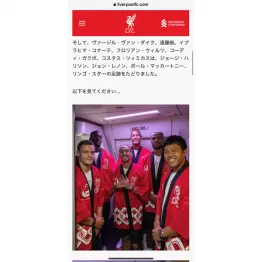 日本航空のチャーター機で成田空港に降り立ったリバプールの選手たちは機内で、1966年に英国の伝説バンドであるビートルズが来日した際に法被姿でタラップを降り立ったシーンを再現。日本代表MF遠藤航(32)もその姿をリバプール日本語版公式Xで披露した。