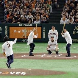 この試合の前には、OBの松井秀喜(51)らが始球式を行った。試合後にグラウンドで背番号「3」の巨大人文字に参加した巨人OBのひとりがこう言った。