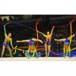 新体操の世界選手権(リオデジャネイロ)は日本時間25日、最終日の団体種目別決勝が行われ、日本(フェアリージャパン)は予選3位通過のリボンで26.650点で銀メダルを獲得。今大会は史上初の金メダルを獲得した団体総合と合わせて、2つのメダルを手にした。