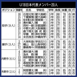 U18高校代表19人の全進路が判明!プロ志望は7人、投手3人は中大に内定、横浜高の4人は?