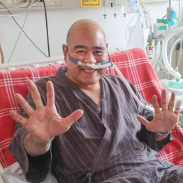 「入院したとき、もうダメなのかと怖くなったけど、奇跡的に10日で一般病棟へ。まだ自力でトイレに行けず、シャワーも浴びられない。でも、リハビリして、10メートル歩けるようになった。食事もとれるし、食欲もある。一歩ずつ良くなってるよ」