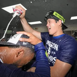 【WAR】 実際、MVPの選考で重視されるWAR(勝利への貢献度を示す総合指標)は守備に就かないDHながら野手として7.2でリーグトップ。投手の1.9と合わせた9.1は昨季の9.0を上回り、2位のペルドモ(ダイヤモンドバックス)の6.9を大きく引き離している。