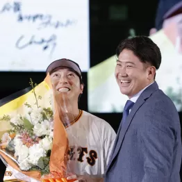 メジャーリーグのFA選手137人に入っているオリオールズの菅野智之(36)が、23日に東京ドームで行われた巨人・長野の引退セレモニーに、サプライズで駆け付けた。