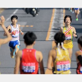 今年4月、揃って早大進学が決まっている3人の争いになるかと見られた中、レースは予想通りハイペースで進んだ。まずは本田が遅れ、新妻も先頭から離される。終盤は増子と鈴木の一騎打ち。残り1キロを切ると増子が引き離しにかかるが、鈴木は離れず、逆にゴール直前で増子を振り切りタスキを渡した。その記録は、24年川原琉人(長崎・五島南)を25秒も上回る19分06秒の区間新記録。2位の増子(19分08秒)3位新妻(19分24秒)までが新記録というハイレベルな戦いだった。