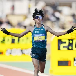 初マラソンだった昨年の大阪の記録(2時間6分5秒=学生新記録)は更新できなかったものの、前日の会見では「箱根に(ピークを)合わせた。その時に比べるとコンディション不良に近い」と話していただけに2時間7分3秒の3位は立派。