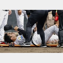 11日、阪神の石井大智(28)が紅白戦で白組2番手として登板、無死一、二塁で前川に右前打を許し、バックホームのカバーに入ったときだった。突然、苦悶の表情を浮かべてグラウンド上に両膝をついた。慌ててトレーナーが駆け寄ったが、立ち上がることはできず、そのまま担架で運ばれたのだ。